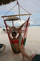Redefine hanging out with the Deluxe Padded Hammock Lounge Chair. From steam-bentcontoured arms to the generously padded seat and footrest this hammock chairdelivers head to toe comfort. Strong and durable polyester cord runs through thehardwood frame to keep you securely suspended in a state of free-swinging comfort.Adjustable breaks determine the amount of play in the ropes giving you control overthe range of motion.Brand new in retail packaging Use indoor & outdoor Burgundy Color UV treated 600 x 600 denier polyester fabric treated wood and is virtually weather proof. Seat is constructed of five 3 cushioned tares providing you with ultimate zero gravity comfort Foot rest Cup holder hangs Overall width 30" seat (occupancy) width 24 1/2" 350 Lb weight capacity weighs 22 lb. Easy assembly which includes tools and hardware Hangs with heavy duty poly cord[]More detail ...